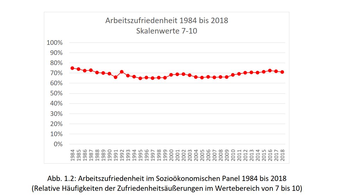 Albert Martin und Luca Cardinali haben die Veränderungen der Arbeitszufriedenheit von 1984 bis 2018 (auf Basis der Daten des Sozioökonomischen Panels) untersucht und Zusammenhänge mit sozio-demografischen Variablen analysiert.