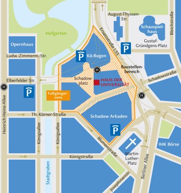 Die Tagung wird zentral in der Düsseldorfer Innenstadt im Haus der Universität (Schadowplatz 14, 40212 Düsseldorf) stattfinden. Detaillierte Informationen zur Lage und Anfahrt finden Sie hier.